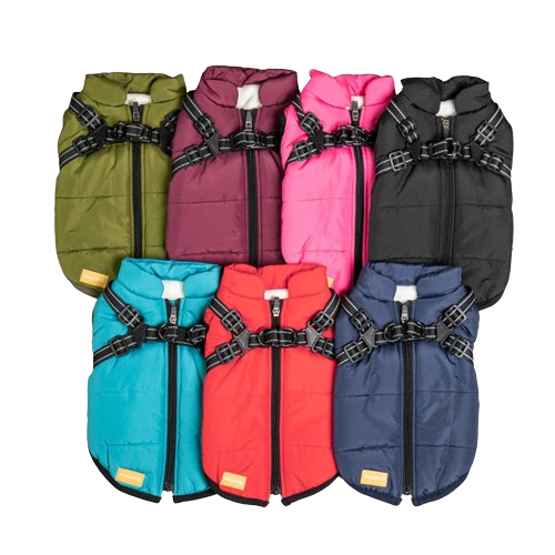Heading out in the cold with your furry pal? Don't mess around layering multiple items on your dog, or threading harnesses through coat holes. With our jacket you can ZIP, CLIP, and GO!